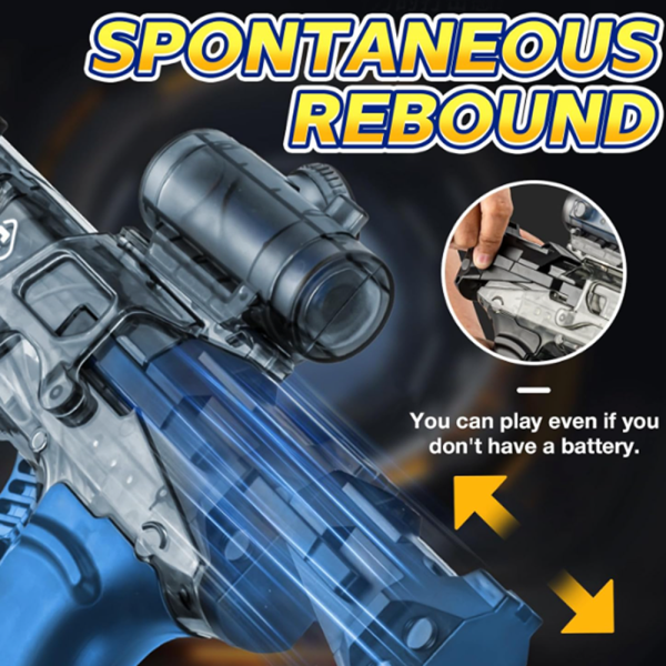 A gyorsan levehető víztartály 500 ml-es kapacitásával több mint 200 lövést tesz lehetővé egyetlen feltöltéssel. Az átlátszó kialakítás nemcsak látványos, hanem praktikus is, hiszen mindig nyomon követheted a vízszintet. Az újratöltés pedig mindössze 5 másodpercet vesz igénybe!