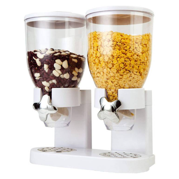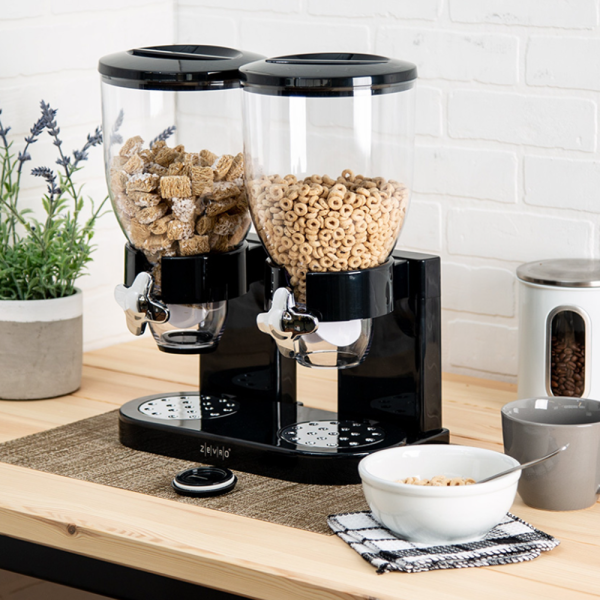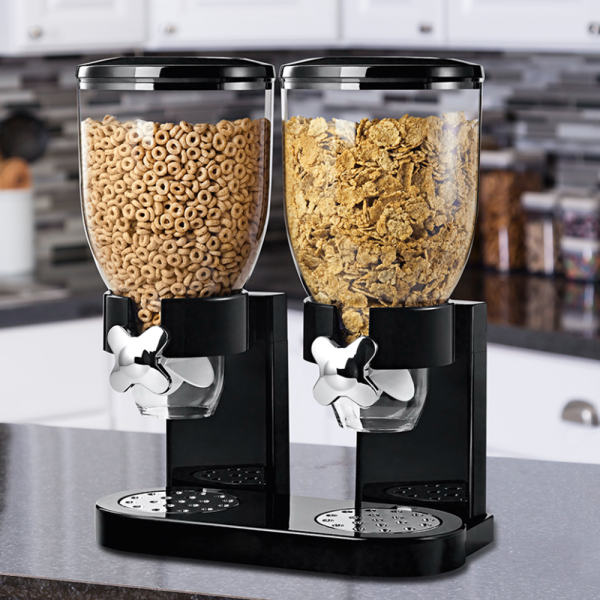 Dupla tartályos design: Tárolhatsz például zabpelyhet és corn fleeket, vagy akár diétás és hagyományos müzlit is egyszerre, így mindenki kedvére választhat a családban.