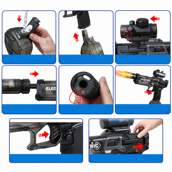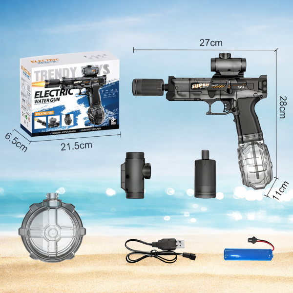 A HydroStorm elektromos vízpisztoly egy erős, látványos és modern vízfegyver, amely garantáltan feldobja a nyári játékokat. Ha egy igazán menő, automata és nagy hatótávú vízpisztolyt keresel, ez a modell telitalálat.