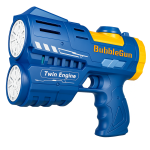 Kék színű 16 fúvókás automata buborékfújó pisztoly dupla LED világítással – nyári kültéri játék gyerekeknek (BBJ)