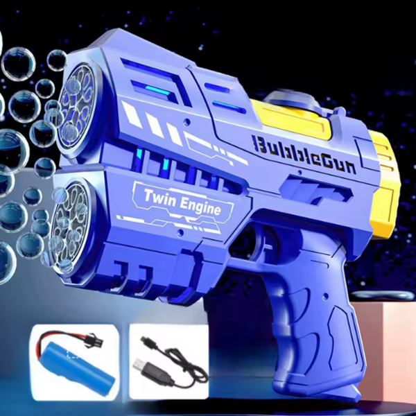 Varázsold el a gyerekeket ezzel a látványos és szórakoztató 16 fúvókás automata buborékfújó pisztollyal, amely egy szempillantás alatt megtölti a levegőt színes buborékokkal!