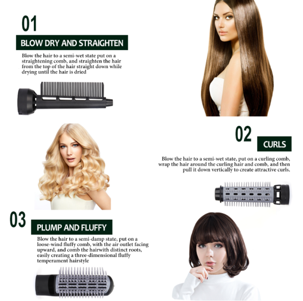 Legyen szó akár a mindennapi stílusról vagy különleges alkalmakról, a negatív ionos 3 az 1-ben forró levegős hajszárító és hajegyenesítő fésű a tökéletes eszköz ahhoz, hogy mindig lenyűgözően nézzen ki!