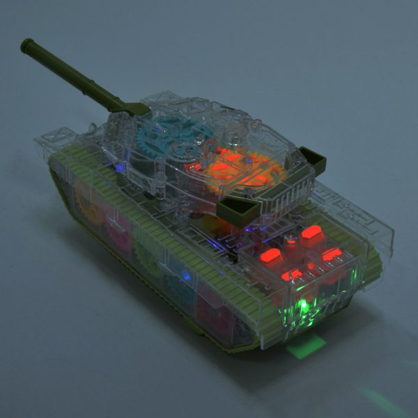 Világító, zenélő, átlátszó fogaskerék tank – színes világító zenés lámpás játék kicsiknek (BBJ)