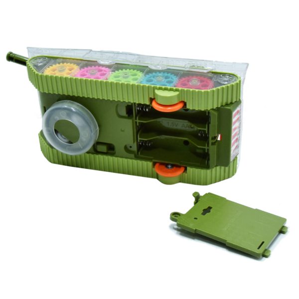 • Interaktív Játékélmény: A tankot egyszerűen működtethetik a gyerekek, például tolhatják vagy húzhatják, hogy lássák a fogaskerekek mozgását és hallgassák a zenét.