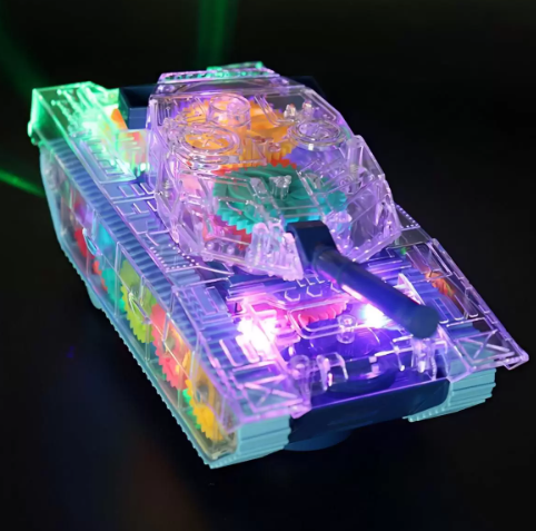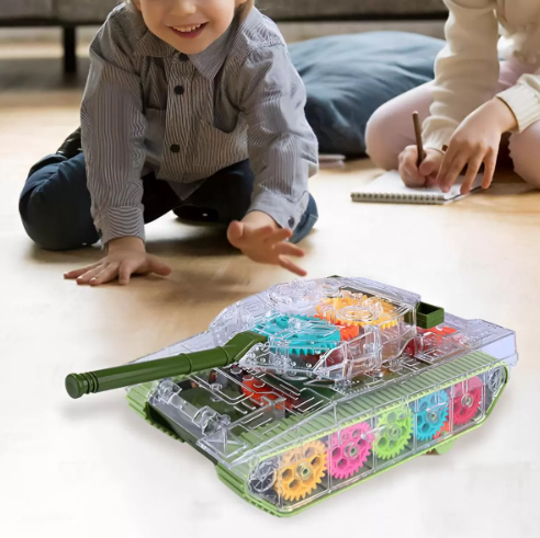 Szerezd be most ezt a lenyűgöző világító, zenélő, átlátszó fogaskerék tankot, hogy kisgyermeked számára felejthetetlen játékélményt biztosíts, amely fejleszti az érzékeit és kreativitását!